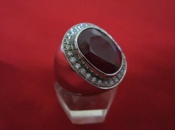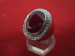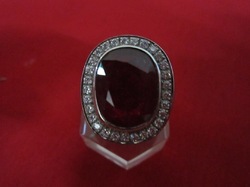 ทับทิมเป็นราชาแห่งอัญมณี เป็นอัญมณีที่มีค่าและราคาแพงมากที่สุดในบรรดาแร่คอรันดัมทั้งหมด สีแดงที่ เป็นที่นิยมกันมากที่สุดคือ สีแดงเข้มบริสุทธิ์ มีสีน้ำเงินปนเล็กน้อย หรือที่เรียกว่า สีเลือดนกพิราบ ซึ่งเป็นสีของทับทิมคุณภาพสูงที่มีในประเทศพม่า และทั่วโลกยอมรับกันว่าสวยที่สุด แหวนพลอยทับทิมวงนี้ เป็นทับทิมพม่า หนัก 10กว่า กะรัต ตัวแหวนเป็นทองคำขาว ล้อมเพรชเบลเยี่ยม 29เม็ด สวยสุดๆ มีใบเซอร์คับ