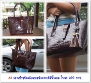 แบบที่ 1 รหัส A1 กระเป๋าหนังแก้วลายหนังจระเข้สีน้ำตาล