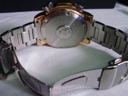 ตัวเรือนสีพิงค์โกลด์ กระจกแซฟไฟร์คริสตัล พร้อมเลนส์ขยายช่องวันที่อยู่ตรง ตำแหน่ง 4 นาฬฺกา ขอบ bezel สีดำตั้ง แต่วินาทีที่ 21-60 ที่เหลือเป็นสีส้มสดใส
