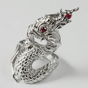 ชื่อสินค้า : แหวนเงินชุบทองคำขาวแกะเป็นรูปพญานาคประดับพลอยทับทิม