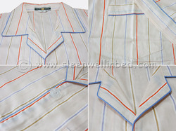 เสื้อ ความกว้างรอบอกประมาณ 45 นิ้ว ช่วงไหล่ด้านหน้ากว้าง 18 นิ้ว แขนเสื้อยาว 23 ซ.ม. เสื้อยาวประมาณ 74 ซ.ม.