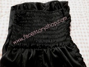 ผ้าไหมเทียมสีดำนิ่มมากค่ะ กระโปรงทรงสอบ ด้านหลังเป็นสม็อกยืดได้ค่ะ