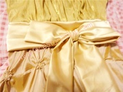 ผ้าไหมเทียมสีทองนิ่มมากๆค่ะ กระโปรงทรงบอลลูน จับจีบรูปดอกไม้เล็กๆรอบตัว