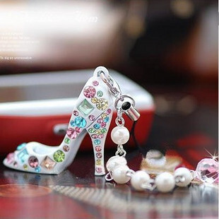 พวงกุญแจรูปรองเท้าประดับเพชรทั้งชิ้น สีขาว สินค้าพร้อมส่ง