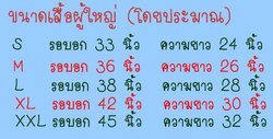 - เสื้อคู่ (เสื้อผู้ใหญ่ 2 ตัว สีเดียวกัน รวมกันได้ทุกไซส์)