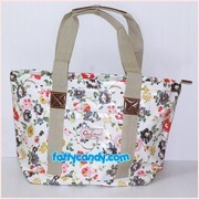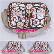 กระเป๋าสะพายข้าง สีขาวลายในตัว ผ้า Canvas กันน้ำ สายสะพายปรับความยาวได้ น่ารักมากค่ะ