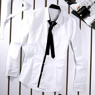 เสื้อเชิ๊ตแขนยาว+เนคไท สีขาว ไซส์ L สินค้าพร้อมส่ง