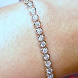 สร้อยข้อมือเพชรทั้งสาย เพชรเบลเยี่ยมน้ำ 98 vvs เล่นไฟสวยประกาย เพชร 55 เม็ด 3.19 กะรัต เรือนทองคำ 90% ชุบขาวทั้งเส้น น้ำหนักทอง 11.76 กรัม ความยาวสร้อย 6.5 นิ้ว