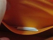 ใบแรก สีเหลือง บุข้างในสีม่วงสวย สภาพดีมากๆ ใบนี้กระเป๋าผ้าหายไปแล้วนะคะ