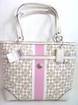 กระเป๋า coach heritage stripe signature tote khaki/pink 15137