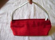 4. กระเป๋าถือ Estee Lauder เป็นผ้าซาตินสีแดง ลายกราฟฟิคเก๋ๆ ด้านบนปิดด้วยซิป 1 ช่อง แถมยังมีช่องซิปด้านข้างอีก 1 ช่อง หูหิ้วสองสาย ภายในเป็นผ้าซาตินสีแดง ขนาดโดยประมาณยาว 10 นิ้ว x สูง 4.5 นิ้ว x ฐาน 3.5 นิ้ว เหมาะกับไว้ถือออกงาน หรือถือในวันที่ไม่ต้องการเอาของไปมากมายคะ