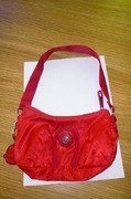 Kipling สีแดง รุ่นอะไรจำไม่ได้แล้วค่ะ เป็นผ้าลื่นๆมันๆ ด้านในมีช่องเดียว และมีตะขอยาวไว้เกี่ยวของได้ เห็นเล็กๆแบบนี้จุของได้ เยอะนะคะ ถือคล้องแขนหรือถือด้านข้างก็ ทำได้ค่ะ