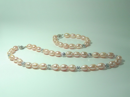 สร้อยคอ + สร้อยข้อมือ มุกขนาด 8 มม. ทรงไข่