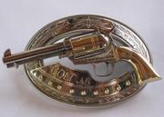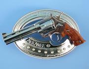 หัวเข็มขัดปืน มีทั้งแบบปืนลูกโม่ .357 และแบบปืนโบราณ