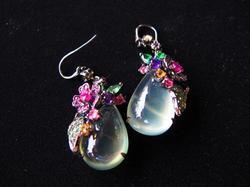ต่างหูพลอยพรีไนท์แท้เจียรนัยหลังเบี้ย สีเขียวสวยใส ทรงหยดน้ำเม็ดโตมากคู่นี้ออกแบบเพิ่มความหวานด้วยดอกไม้ฝังพลอยทับทิมพม่าสีชมพู ใบไม้ฝังพลอยกรีนการ์เน็ตสีเขียวสด แล้วตกแต่งด้วยพลอยสีต่างโทน เช่น อเมทิสสีม่วง บุษราคัมสีเหลือง ต่างหูคู่นี้ของจริงสวยหวานมากค่ะ