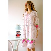 ชุดนอนน่ารัก สไตล์คุณหนูหวาน ลายสตอบอรี่ แขนยาวจั๊มปลายมีระบาย เนื้อผ้าคอตตอล เนื้อนิ่ม บางเบา เรียบร้อย