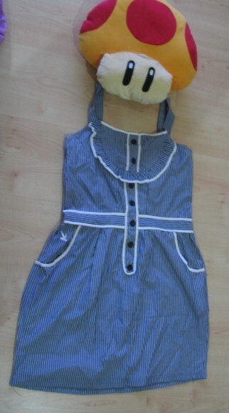 sale เลิกกิจการค่ะ cp2hand154 เสื้อสายเดี่ยวสีน้ำเงินลายทาง มีปักรูปนกที่กระเป๋าด้วยค่ะ ราคา 100 บาท