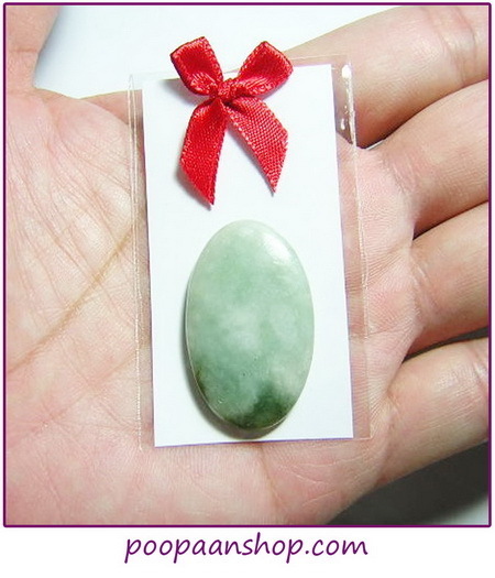 หยกเป็นหินมงคลและเป็นของคู่กำเนิดของคนเกิดวันพุธ(สีเขียว) หรือคนที่เกิดในเดือน พฤษภาคม ตำนานความขลังของหยกมีมานานนับพันๆปี ชาวจีนถือว่าทุกคนต้องมีเครื่องประดับหยกติดตัวอย่างน้อยหนึ่งชิ้นหรือไม่ก็ควรมีติดไว้ในกระเป๋าเพื่อความเป็นศิริมงคล หยกชิ้นนี้ ตัดมาจากก้อนหยกที่ได้มาจากพม่า แจกให้สมาชิกของ"ปูแป้นช้อป"เท่านั้น บรรจุในซองแก้วใสสวยงามพร้อมติดโบว์สีแดงสดใส(สินค้ามีจำนวนจำกัด)