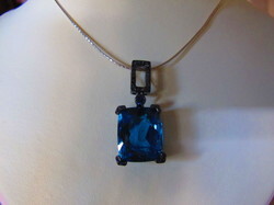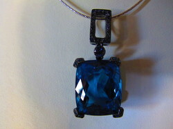 จี้พลอยบลูโทปาสแท้เม็ดใหญ่นี้ สี Top Swiss Blue Topaz เลยนะคะ สีฟ้าสด น้ำฉ่ำ ไฟและประกายดี สวยสุดยอด ล้อมด้วยพลอยไพลินสีน้ำเงิน จี้ชิ้นนี้ใส่โชว์พลอยเด่นสดุดตา เก๋มากค่ะ