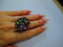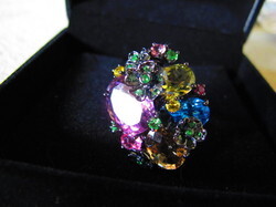 แหวนพลอยแท้วงนี้ ดีไซน์เป็นช่อดอกไม้หวานๆ จัดช่อสูงต่ำมีมิติ ด้วยการใช้พลอยแท้หลากหลายชนิด เช่น อเมทิสสีม่วงสวย บลูโทปาสสีฟ้าสด เลม่อนควอร์ทซสีเหลืองมะนาว พิงค์ทัวมาลีนสีชมพู กรีนการ์เน็ตสีเขียว และบุษราคัมสีเหลือง พลอยทุกเม็ดน้ำดี ประกายสวย แหวนวงนี้หวานหยด เป็นอีกวงที่ปลื้มค่ะ