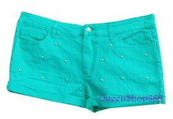 กางเกงขาสั้น สียีนส์น้ำเงิน ปักลายด้านหลัง น่ารัก ใส่สบาย ๆ ไซส์ใหญ่ Size 36 (1123)