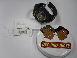 นาฬิกาข้อมือ G-Shock ใหม่ GA-110DR ที่ออกแบบโดย Dee & Ricky คู่หูนักออกแบบจาก New York รุ่น limited edition ระบบ chronograph มีหน้าปัด analog และ digital ขนาดใหญ่ที่ได้รับแรงบันดาลใจในการออกแบบมาจากแคทวอร์ค GA-110DR ใช้การออกแบบบนพื้นฐานของกล่องสี่เหลี่ยม หลังจากนั้นก็เพิ่มสีสันเข้าไปในแบบนาฬิกาของ เล่น G-Shock รุ่นใหม่นี้ใช้ LED ที่ส่องสว่างมากๆ เข็มรูปเฟืองให้ความรู้สึกหลากหลายมิติ โลโก้ Dee & Ricky ที่สายนาฬิกาและสลักอยู่บนฝาหลัง Dee และ Ricky Jackson บอกว่า .นาฬิกาที่ดีที่เราชอบคือ Dee & Ricky G-Shock. Dee & Ricky GA-110DR G-SHOCK ยังคงรูปแบบของ G-Shock ไว้ด้วยการทนต่อสนามแม่เหล็กที่ตรวจพบได้ด้วยเครื่องตรวจโลหะที่ใช้ในบริเวณ ท่าอากาศยานตามมาตรฐาน JIS Class Level 1, กันน้ำลึก 200m, ระบบทนแรกระแทก, ไฟ LED อัตโนมัติ, นาฬิกาปลุก 4 เวลา, ปลุกต่อเนื่อง (snooze) 1 เวลา, ปฏิทินอัตโนมัติ และสัญญาณเตือนทุกชั่วโมง เกี่ยวกับ Dee และ Ricky Dimitrious และ Ricky Jackson พี่น้องฝาแฝดวัย 22 ปีจากเกาะ Staten คือผู้อยู่เบื้องหลังเครื่องประดับแบรนด์ Dee & Ricky จากความคิดอันชาญฉลาดของพวกเค้าเองทั้งหมดบวกกับความคุ้นเคยที่เห็นคุณย่า ของพวกเค้าเย็บผ้าและการติดตามความสำเร็จของบรรดานักออกแบบที่มีชื่อเสียงบน รันเวย์ กลายมาเป็นผลงานของพวกเค้าเองที่อยู่ในระดับเกรด 9 พวกเค้าสร้างอุปกรณ์เลโก้ที่ได้รัความนิยมอย่างมากและขณะร่วมงานใน Hamptons ในฤดูร้อนปี 2007 ก็ได้รับความสนใจจากไสตลิสท์ Jason Preston หลังจากนั้นเค้าแนะนำให้รู้จักกับนักออกแบบ Marc Jacobs และการประชุมที่ MJ HQ ถูกกำหนดขึ้นอย่างรวดเร็วภายในวันเดียว Dee และ Ricky ได้รับความไว้วางใจในการทำงานออกแบบแบบครบวงจรสำหรับอุปกรณ์เลโก้ให้แก่ Marc โดย Marc Jacobs ที่จะใช้ในช่วงฤดูใบไม้ผลิปี ?08 เข็มขัดและเข็มกลัดรูปหัวใจอันเป็นเอกลักษณ์ของพวกเค้ามีจำหน่ายอยู่ในร้าน ค้าทั่วโลกรวมทั้ง Colette ในปารีสและ Kid Robot ใน New York และได้รับการอุดหนุนจากบรรดาผู้มีชื่อเสียงอย่างเช่น Kanye West, Takashi Murakami, Beyonce Nigo และคนอื่นๆ