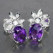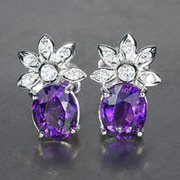 ต่างหูแอเมทิสต์แท้ (Amethyst) สีม่วงสวยประดับเพชรสวิสเกรดเอเป็นรูปดอกไม้