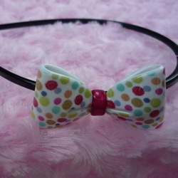 ที่คาดผมเซลลูโลส รูปโบว์สีขาวลายจุด เป็นลายใหม่ค่ะ สีสรรน่ารักมากค่ะ คาดแล้วไม่เจ็บข้างหูค่ะ สินค้านำเข้าจากประเทศเกาหลี