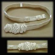 (รูปที่5 แถวล่างกลาง) รหัสสินค้า Belt03 เข็มขัดเงินแท้92.5% งานฝีมือ ลายถัก น้ำหนัก 336 กรัม ความยาว 27" - 33" (เลื่อนสั้นยาวได้) กว้าง 2.4 ซ.ม. ชิ้นนี้ราคากรัมละ 50 บ. เท่านั้น