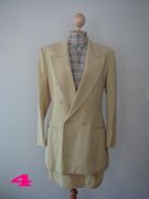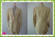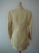 ชุดสูทสีเหลื่องอ่อนๆ ชิ้นล่างเป็นกระโปรงสีเดียวกับเสื้อสูท