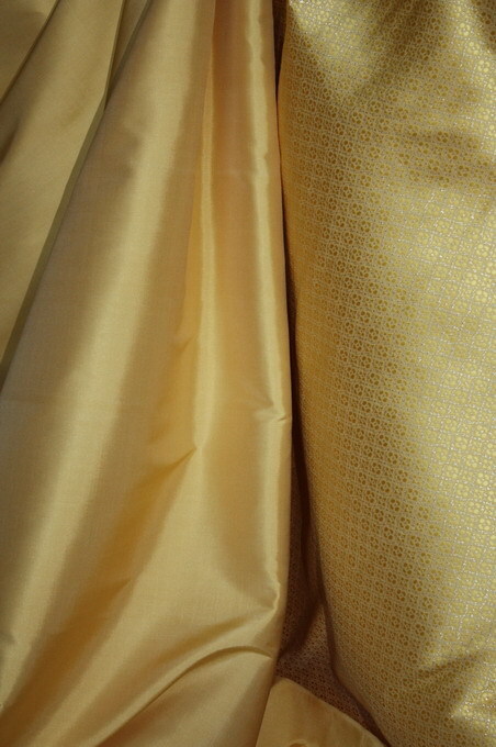 ผ้าไหมทอยกดอก สีทองลายดอกบัวตองทอพิเศษ จากโคราชไทยซิลค์
