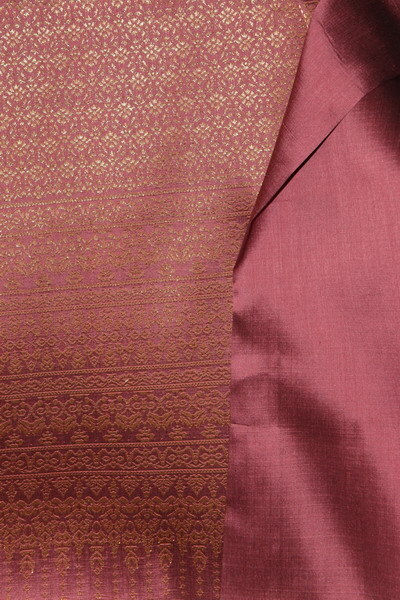 ผ้าไหมทอยกดอกแบบเชิงเกาะ สีชมพู จากร้านโคราชไทยซิลค์
