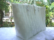 กระเป๋าพลาสติกสีขาว สานแบบสี่เหลี่ยมจัตุรัส >>>>> ขนาดกระเป๋ายาว 17 นิ้ว * สูง 10.5 นิ้ว * ฐานกว้าง 5 นิ้ว สายยาว 20 นิ้ว สะพายไหล่ได้ ทรงกระเป๋าน่ารักมาก สีก็สวยด้วยค่ะ