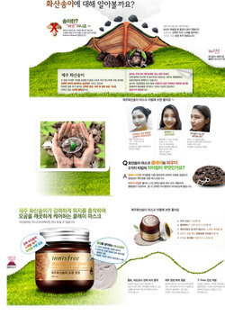 มาส์กโคลนจากเถ้าภูเขาไฟเกาะเชจู ช่วยดูดซับความมันส่วนเกิน มีประสิทธิภาพทำความสะอาดและกระชับรูขุมขน ให้ผิวเนียนเรียบ มีสุขภาพดี