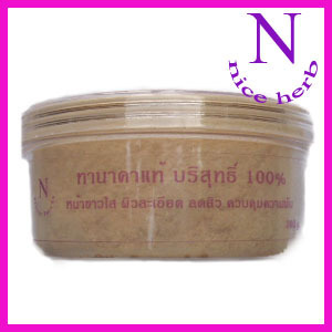 เปลือกทานาคาบดละเอียดจะมีลักษณะเป็นผงสีเหลืองนวล ใช้ผสมน้ำขัดหน้าและพอกไว้สักครู่จนแห้ง