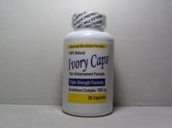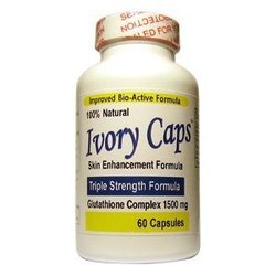 Ivory Caps contains the extra high potency Glutathione "Skin EssentialsTM" complex.Studies have indicated that Glutathione works to whiten skin by inhibiting the production of melanin and reducing the concentration of pigmentation in the skin, creating a lighter more even skin tone.