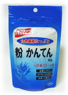 KANTEN เจลาตินผักจากสาหร่ายทะเลชนิดผง ผลิตภัณฑ์ยอดฮิตจากญี่ปุ่น ให้พลังงาน 0 แคลอรี่ ไฟเบอร์สูง เป็นผลิตภัณฑ์ธรรมชาติ 100 % สามารถชงร่วมกับเครื่องดื่ม หรือ นำมาทำอาหารได้ทั้งอาหารคาวและหวาน แก้ปัญหาท้องผูก ลดไขมัน ช่วยให้น้ำหนักลดลง และช่วยลดคอเลสเตอรอลและน้ำตาลในเลือดได้ โดยการแพทย์ประเทศญี่ปุ่นออกมารับรองว่า เจลาตินผัก (vegetable gelatin) สามารถแก้ไขปัญหาอย่างได้ผล