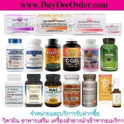 จำหน่ายอาหารเสริมบำรุงสุขภาพ, อาหารเสริมเพื่อผิวขาวใสและลดเลือนริ้วรอย, วิตามิน และเกลือแร่, กลูต้าน้ำ, Vitamin C, NAC, GliSODin, CoQ10 H2 (Ubiquinol), Alpha Lipoic acid, Melatonin, Pycnogenol, Sheep Placenta นิวซีแลนด์, Hyaluronic acid, Collagen รวมทั้งสารต้านอนุมูลอิสระต่างๆ (Antioxidant)