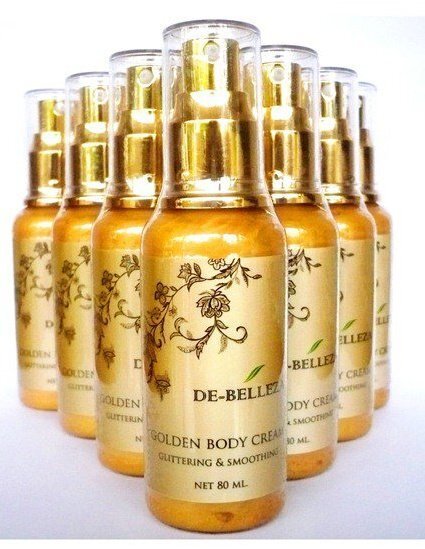 ครีมบำรุงผิวกาย โกลเด้นบอร์ดี้ครีม ด้วยประกายชิมเมอร์สีทอง ช่วยให้ผิวดูสว่าง ระยิบระยับ พร้อมบำรุงผิวให้นุ่ม เนียม ชุ่มชื่น (เหมาะสำหรับผิวสองสีค่ะ)