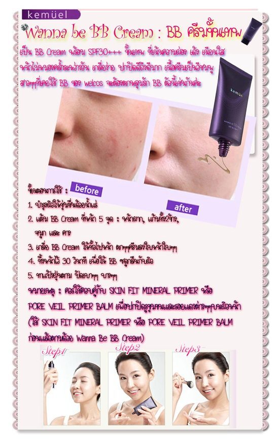 Kemuel:Wanna Be BB CREAM 40 ml. เป็นบีบีขั้นเทพมากๆๆนะค่ะ เป็นยี่ห้อในเครือ welcosค่ะ ใครที่หลงรักและชื่นชอบ BB Cream welcos ต้องหลงรักยี่ห้อ Kemuel ด้วยค่ะ