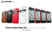 Capdase Smart Pocket Value Set for iPhone 4 ชุด ซองหนัง PVC และ เคสซิลิโคน สามารถใส่คู่กับได้ เพื่อการปกป้องแบบ DOUBLE จาก Capdase สามารถดูเบอร์คนที่โทรเข้า หรือ ดูเวลา โดยไม่ต้องเอา iPhone4 ออกจากซอง หยิบง่ายด้านหลังมีที่ดึงDesign หรูหรา มาพร้อมการใช้งานที่ง่ายดาย ซอง iphone 4 พร้อมเคส มี 4 สี คือ สีดำ สีน้ำตาล สีขาว และสีแดง