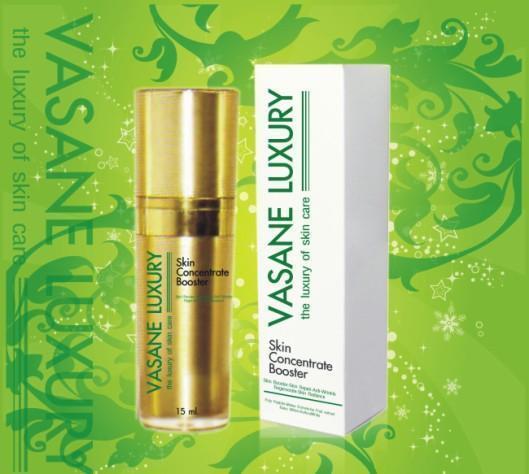 Vasane Skin Concentrate Booster ซีรั่มเข้มข้นจากผลแอปเปิ้ลพันธ์หายากและทองคำ ลดจุดด่างดำ รอยแผลสิว หลุมสิวที่เป็นมากๆเป็นมานานแก้ไม่หายสักที ลดรอยเหี่ยวย่น ที่ย่นมากจนหมดสวย จนอยากจะฉีดโบท๊อกได้ดีเยี่ยม และทำให้หน้าใสอย่างรวดเร็ว ที่สามารถสร้างเซลล์ใหม่ด้วยคุณค่าของ สเต็มเซลล์จากพืชและสารสกัดจากทองคำ (Gold Peptide)ช่วยเพิ่มพลังงานให้เซลล์กลับมามีชีวิตและรักษาเซลล์ผิวให้แข็งแรง ป้องกันการทำลาย Collagen และ Eslastin ลดเลือนรอยด่างดำ รอยแผลสิว ปรับผิวให้แลดูอ่อนวัยอยู่เสมอ พร้อม Tri-peptide ช่วย ลดการจับยึดและยับยั้งการทำงานของ Snare Complex ส่งผลให้กล้ามเนื้อบนใบหน้าผ่อนคลาย ริ้วรอยต่าง ๆบริเวณ ร่องแก้ม หน้าผาก มุมปาก แลดูลดลงและตื้นขึ้น (Botox-like)
