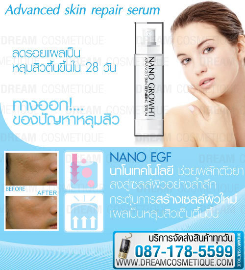 หลุมสิว,เซรั่มฟื้นฟูหลุมสิว,หน้าเรียบเนียน,รูขุมขนกว้าง,สิว,รอยสิว,Nano Growth Factor,Growth Humone,Stemcell Serum,สเต็มเซลล์,ลดริ้วรอย,EGF,Nano Collagen,Nano DNA,Marine DNA,Beta-Glucan,Nano Whitening,Nano White-3,Melanoblock,Copper Peptide,Gold Peptide,Nanopartical,Nanosome,DMAE,OGG1 enzyme,White Complex,Scar,Acne,