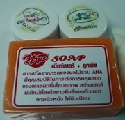 3.สบู่ เบียร์เบอรี่+ลูกพีช มีส่วนผสมของ AHA ทำให้หน้าขาวใส ลดจุดด่างดำ