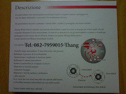 - กลูต้า SG หรือ STEM CELL Gold Super Anti-Oxidants มีกลูต้า 1500mgภายใน 7 วัน ตัวใหม่จากอเมริกา ได้รับความนิยมสูง ที่สุดในขณะนี้ รวมอาหารผิวที่ดีที่สุด เพื่อผิวขาวใส ชะลอวัย กระชากวัย เพิ่มความชุ่มชื้น เนียนนุ่ม ชะลอริ้วรอยก่อนวัย ได้รับการยอมรับจากวงการแพทย์และความงาม แล้วว่า สามารถฟื้นฟูและบำรุงเซลล์ผิวได้ถึงระดับ DNA ทำให้ผิวแข็งแรงมีความยืดหยุ่นเหมือนผิวเด็กแรก
