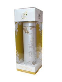 สเปรย์ แต่งสีผิว ผสมสารป้องกันแสงแดด สเปรย์แต่งสีผิวเพื่อความเรียบเนียนกลมกลืนดั่งใจปรารถนา พร้อมคุณค่าบำรุงผิวกายจาก PEARL EXTRACT สารสกัดจากไข่มุกธรรมชาติ ช่วยให้ผิวขาวนวลเนียนขึ้น และ COLLAGEN เสริมสร้างใยคอลลาเจนให้ผิวมีความยืดหยุ่นแข็งแรง พร้อมด้วยซิมเมอร์เนื้อละเอียดที่เปล่งประกายเย้ายวน กลมกลืนไปกับทุกสีผิว จากประสิทธิภาพในการปกป้องรังสี UVA UVB ให้คุณโชว์ผิวสวยได้ตลอดวัน โดยไม่เกรงกลัวแสงแดด บอดี้เมจิกเหมาะกับทุกโอกาส เพิ่มความมั่นใจให้คุณอวดทรวดทรงยามอยู่ในชุดราตรี หรือแม้แต่ในชุดว่ายน้ำ (WATER PROOF)