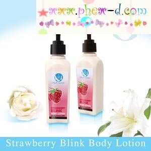 Strawberry Blink Body Lotion : โลชั่นบำรุงผิวสตรอเบอร์รี่สด ( ผิวขาวใส-บริงค์ทั้งตัว ) ด้วยสตรอเบอร์รี่สด+น้ำนมข้าว ลดจุดด่างดำ ปกป้องผิวจากแสงแดด ใช้เพียง 15 วัน คนรอบข้าง จะทักเหมือนคุณเป็นคนใหม่