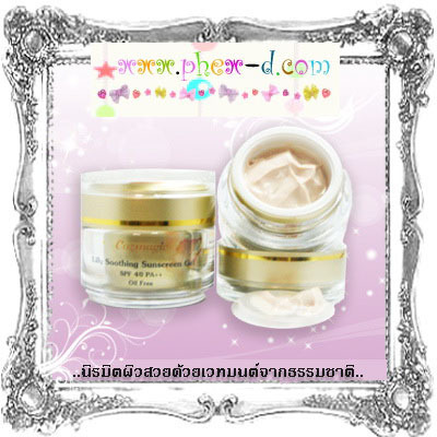 “Lilly Soothing Sunscreen Gel” เจลกันแดดประสิทธิภาพสูงสูตรที่พัฒนามาสำหรับผิวเป็นสิวและ/หรือผิวแพ้ง่ายโดยเฉพาะ สามารถปกป้องผิวได้ทั้ง UVA และ UVB ถึง 40 เท่าเนื้อสุดบางเบา เนื้อเจลจะซึมเข้าสู่ผิวทันทีที่ทาโดยปราศจากความมัน และไม่ทำให้หน้าขาววอก ไร้การแต่งสี จึงอ่อนโยนกับทุกสภาพผิว ไม่ก่อให้เกิดการอุดตัน จึงไม่ทำให้เกิดสิว แต่ในทางกลับกัน “Lilly Soothing Sunscreen Gel” ยังมีมีสารสกัดจากธรรมชาตินานาชนิดที่ช่วยลดสิว ไปพร้อมกับการบำรุงผิวให้ขาวกระจ่างใสขึ้น และเติมน้ำหล่อเลี้ยงให้ผิว