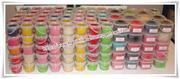 @ แป้งโดว์ ขนาด 200 กรัม @ 25 บาท บรรจุลงในกระปุกหูหิ้วทรงกลม