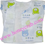เป็นเสื้อผ้าสาลูผ้าด้านนอกเป็นลายน่ารัก 1 ชั้นด้านในเป็นผ้าสาลูสีขาวเนื้อนุ่ม 1 ชั้น ตะเข็บเสื้อถูกเย็บซ่อนไว้ด้านในไม่ทำให้ระคายเคืองผิวที่บอบบาง ติดแบะด้วยเมจิกเทป ขนาดเล็กสูง 1 ซม. ยาวประมาณ 3.5 ซม.ด้านหน้า 2 ตำแหน่ง บน-ล่าง ปรับระดับตัวได้ด้วย เมจิกเทป สวมใส่แล้วไม่ร้อน ซับเหงื่อได้ดีเยี่ยม